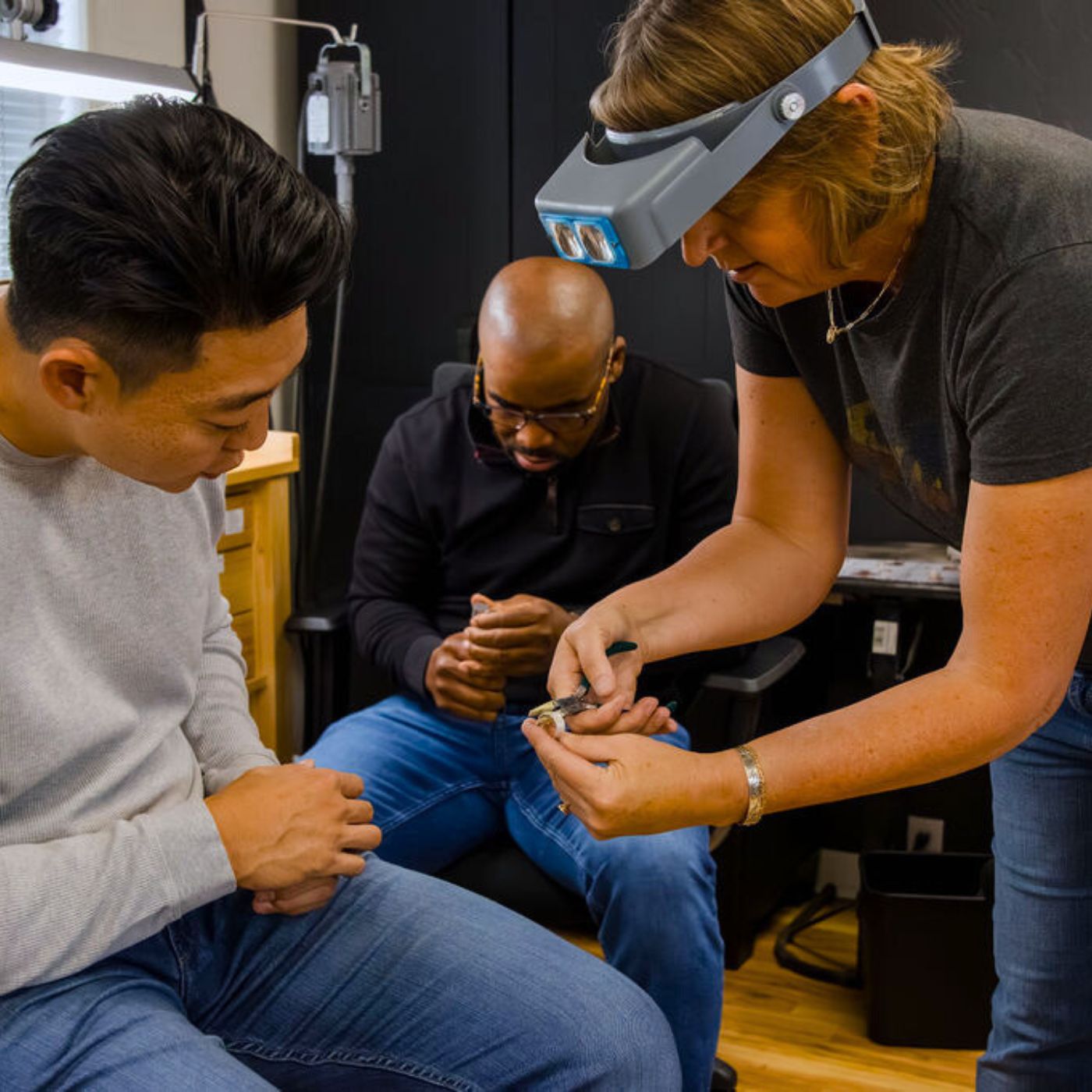 "My wife and I were able to make our own wedding bands with Jen! During the consultation we discussed materials, and looked at different examples to decide what look we wanted for our rings! During the making of the rings we covered a lot of information for beginner jewelry making and it was SO much fun to learn about the process! We got to test out the process using cheaper materials to gain confidence and proficiency before we committed to working on the materials for our rings! We could not be more pleased with how both of our rings came out and it was so fun approaching the making in two different ways and really getting a good introduction to the awesome space! We we're even able to put our leftover materials back towards credits for classes! The class space is very clean and organized! We are excited to come back sometime! Thank you!!!" - Kyle Guiterrez