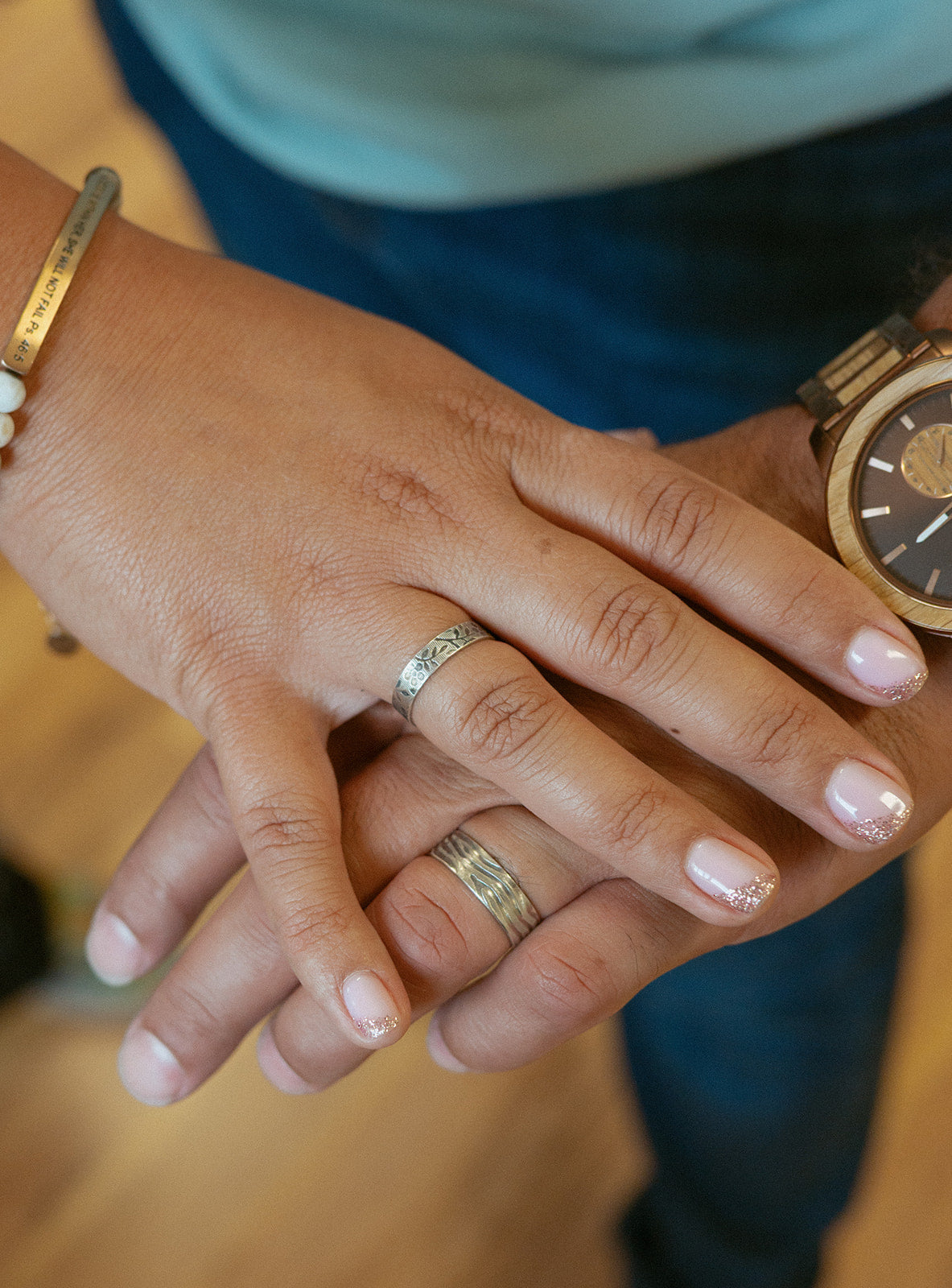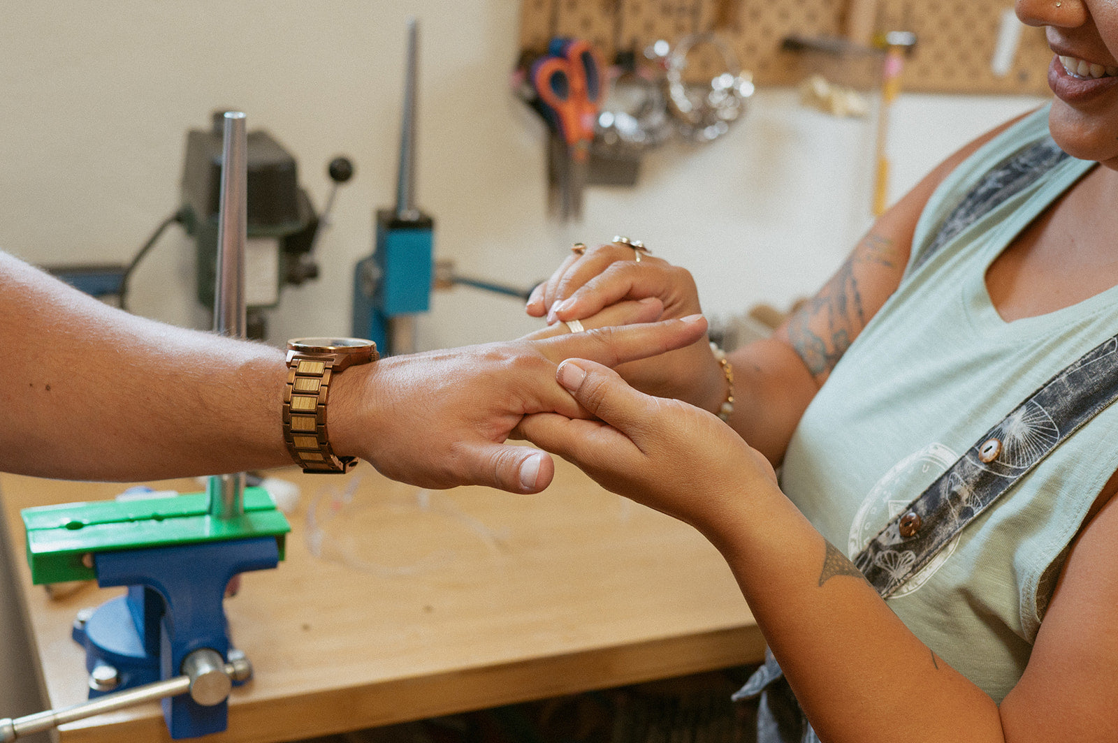 Craft rings as intentional and enduring as your love. At Silver Peak Jewelry Arts, our Make Your Own Wedding Bands experience invites couples into the studio to hand-forge their own rings under the guidance of professional metalsmith and jewelry designer (and Silver Peak owner), Jen Lesea-Ames.