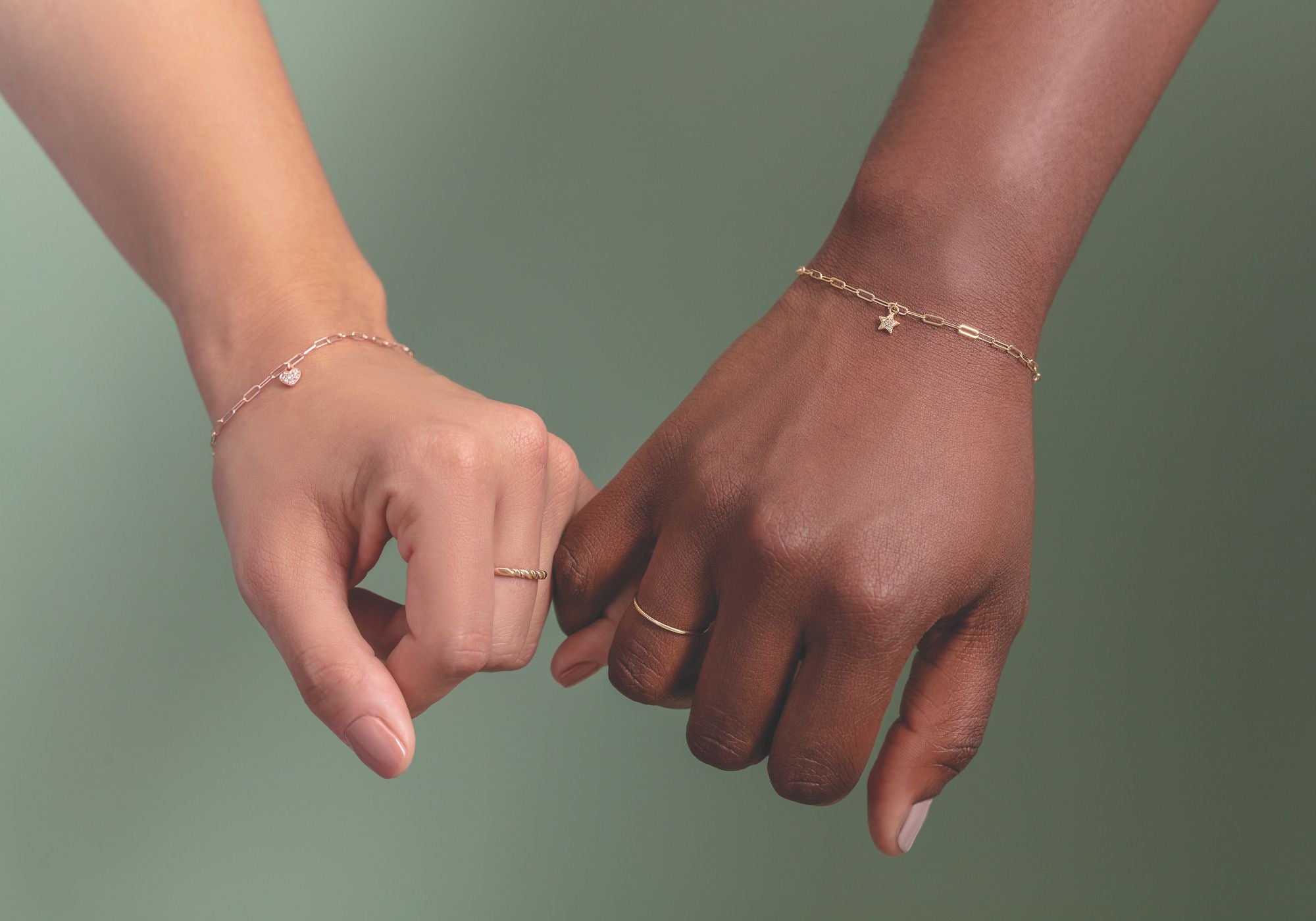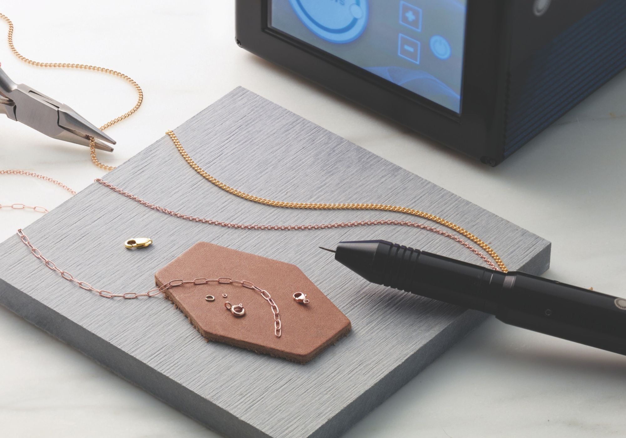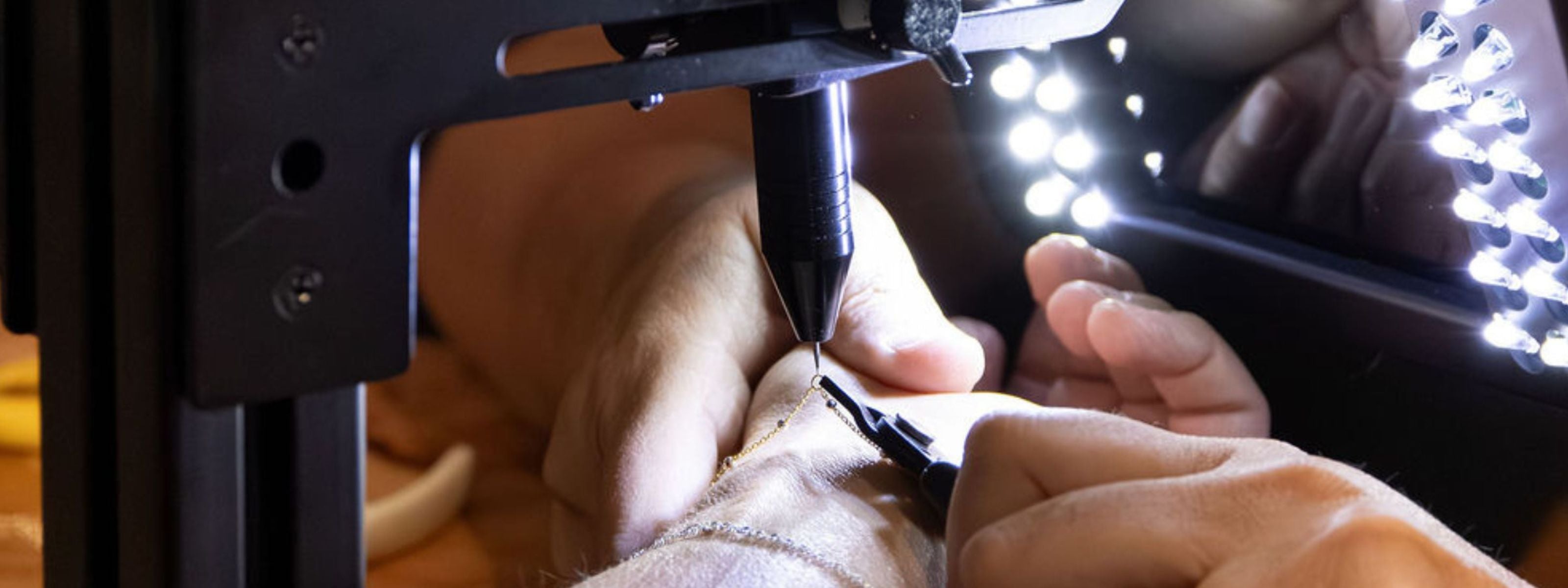Welded jewelry, also called "permanent" jewelry, refers to chains that are custom-fit chains that have a welded jump ring in lieu of a clasp. A 14k gold or sterling silver jump ring is welded closed, ensuring the chain remains secured. This type of jewelry can be chosen for its aesthetic appeal, as a means of self-expression, or to serve as a constant reminder of personal intentions. Some individuals view it as a symbolic representation of personal significance, a way to commemorate milestones, or celebrate bonds.
