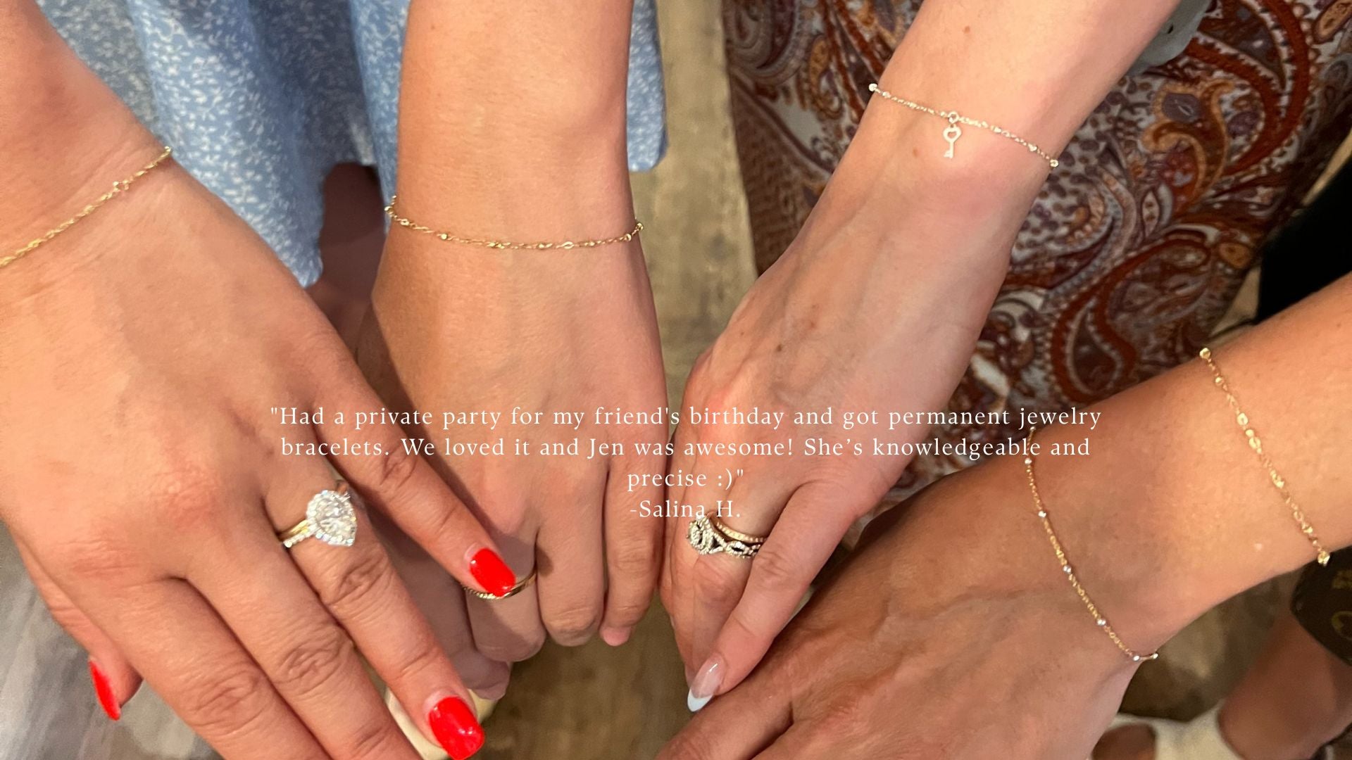 Keep your welded jewelry nice and shiny, even if you didn't originally get welded by us! We will take your welded jewelry off, clean it, and re-weld for $15 per bracelet (or anklet or necklace). Please note: cleaning & re-welding can take up to 30 minutes so please allow enough time. Please contact us to schedule an appointment.