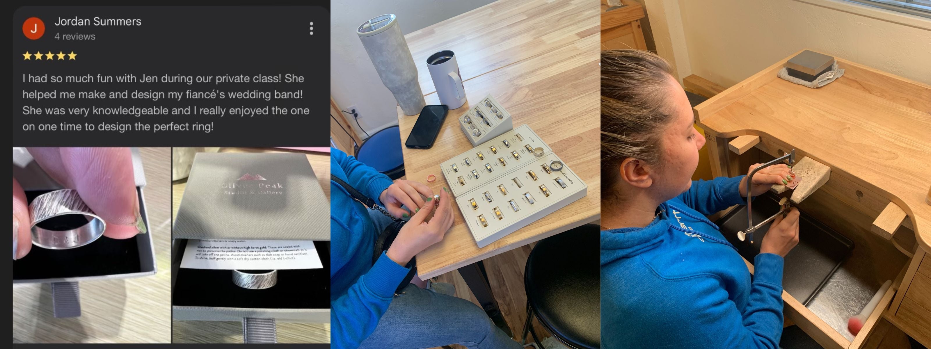 Experience metalsmithing at your own pace with a private lesson at Silver Peak Jewelry Arts. Whether you’re brand new to the bench or looking to refine specific skills, our private metalsmithing lessons are tailored entirely to you.